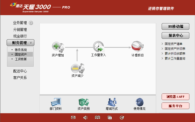《天耀V3.cloud 商业版》是速达软件公司最新推出的企业管理系统。系统支持云部署和桌面服务器部署及APP 部署,高度满足企业应用需求,大大提升了应用效率和安全性。将企业进销存、POS、财务、客户关 系集成于一体并科学的结合“云”技术,同时支持浏览器端(B/S)、桌面端(C/S)、移动应用(APP)等 多种应用模式。真正满足企业管理的个性化需求,全面提升企业综合管理水平。