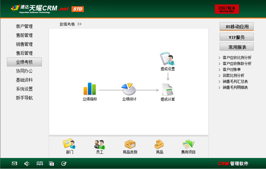 - 可随时查看各部门、各业务员各类指标的任务和完成数据,分析任务完成率,凭以督促任务或作为考核依据;