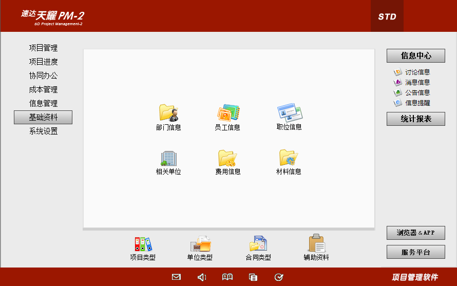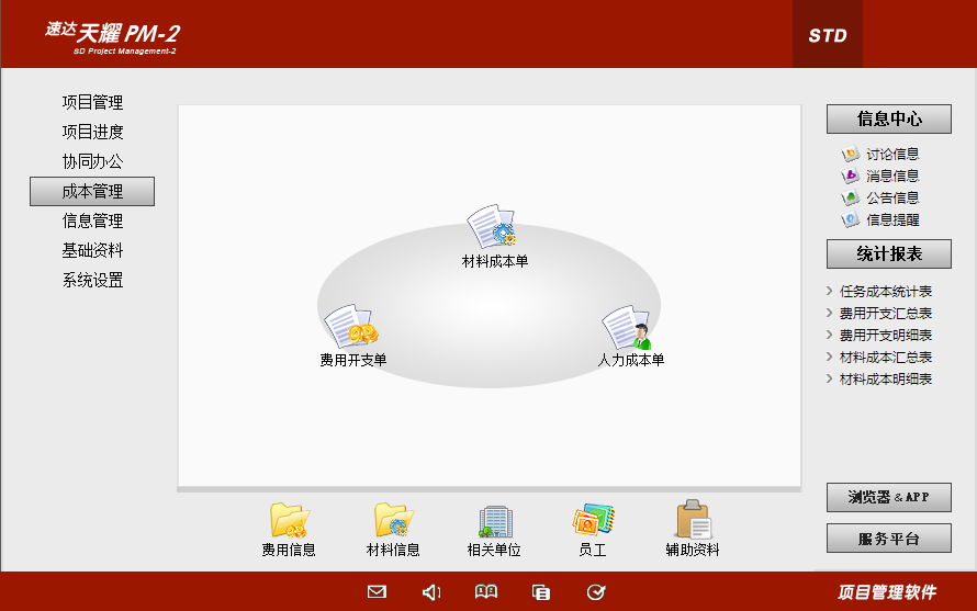 - 支持材料信息、费用信息、项目类型、单位类型、相关单位的录入、查询和跟踪;