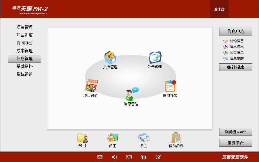 - (文档管理、公告管理、项目讨论、消息管理、信息提醒)