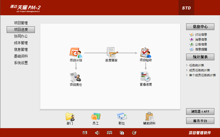 《天耀PM-2 STD》是针对小企业项目管理需要开发的一款软件产品,充分考虑小企业机构简单、项目多且规模小、管理灵活等特点,集项目管理、项目进度、信息管理为一体。软件系统将项目管理思想融合到业务管理、财务管理中,着重于项目管理过程的可视化以及相关信息数据的关联,关注项目过程中的沟通协作。